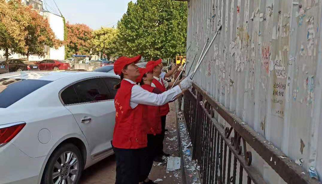 2019年9月22日星期天下午,牡丹大酒店全體在崗黨員放棄公休時間,到和平社區(qū)家屬院參加志愿者服務(wù)活動,志愿者領(lǐng)隊高舉牡丹大酒店店旗走在最前面,參加義務(wù)勞動的同志身穿紅色志愿者馬甲,頭戴志愿者小紅帽,志氣高揚,列隊齊整。為做好這次志愿者服務(wù),黨員分成三個志愿者小組,第一小組人員深入社區(qū)住戶,發(fā)放“雙城同創(chuàng)”宣傳資料和倡議書。第二小組人員手持鐵鍬、鐮刀到社區(qū)綠化帶清除亂石雜草;第三小組人員手拿清潔工具清掃小區(qū)街道,手握小鏟子清理小區(qū)樓梯走廊過道內(nèi)亂貼亂畫的小廣告。志愿者黨員盡職盡責(zé),熱情高漲,有的同志在在清除小廣告時汗流浹背,有的同志用鐵鍬鏟草時雙手磨出了血泡,但他們都奮勇爭先,堅持到底?;顒咏Y(jié)束時,大家滿身沾滿塵土,有些疲憊,但回望清掃一新的小區(qū),心理有一種“甜滋滋”的滿足。
