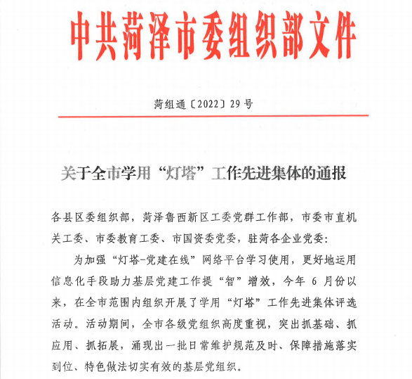 菏澤投資集團(tuán)2家黨組織榮獲“全市學(xué)用‘燈塔’工作先進(jìn)集體”稱號(hào)
