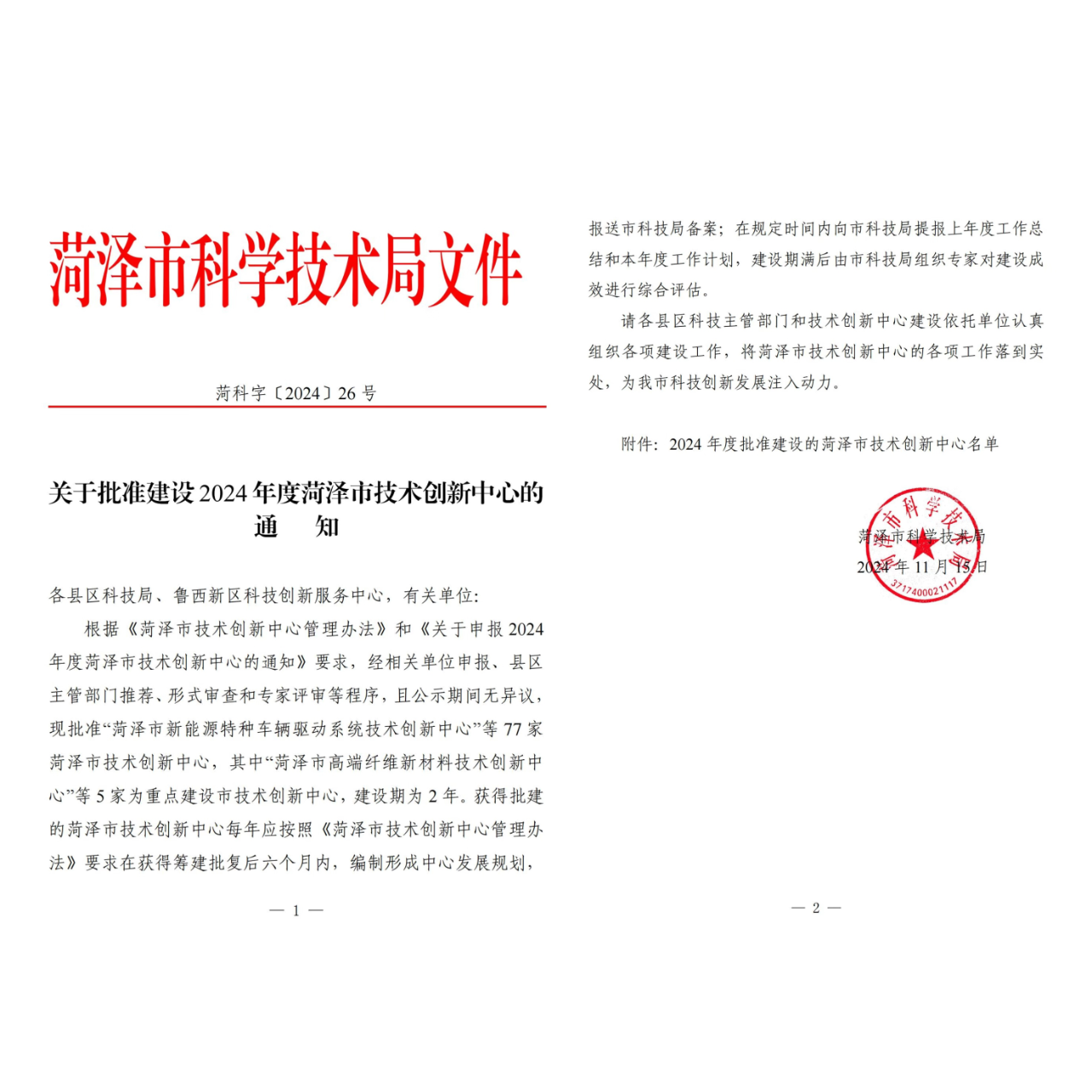 菏投集團(tuán)華澤電器公司獲批菏澤市技術(shù)創(chuàng)新中心